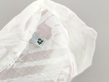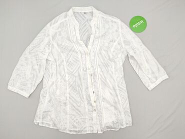 Bluzka damska River Flower Collection - Rozmiar z metki: 42 - Krój: luźniejszy, zaokrąglony dół (dłuższy tył), dekolt typu stójka z listwą guzikową na 4 guziki - Rękawy: 3/4 - Wzór: drobny geometr...