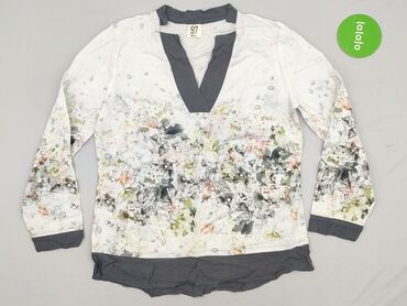 Bluzka damska TXM fashion, rozmiar 40. - Kolor bazowy: biały - Wzór: roślinny/kwiatowy w odcieniach zieleni, żółci i czerwieni - Fason: luźny, lekko wydłużony tył (zaokrąglony dół) - Rękawy: 3/4 z...