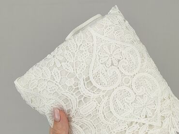 Biała bluzka damska z koronkową aplikacją - Krój: luźny, z krótkim rękawem - Dekolt: okrągły - Materiał: miękka dzianina od spodu + ażurowa, koronkowa warstwa wierzchnia - Detale: dekoracyjny, gęs...