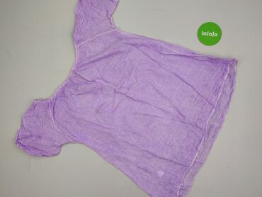 Bluzka damska w kolorze lawendowym - Krój: luźny, oversize; lekko opuszczona linia ramion - Dekolt: w kształcie litery V z delikatną zakładką z przodu - Rękawy: krótkie, szerokie - Dół: zaokrąglon...Stan: