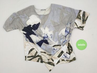 Bluzka damska ZARA BASIC - Rozmiar z metki: EU XL / USA XL / MEX 32 - Skład: 91% poliester, 9% elastan - Made in Spain - Krój: luźniejszy, z krótkim rękawem - Przód: biały z abstrakcyjnym nadrukie...