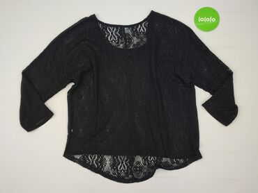 Czarna koronkowa bluzka damska - Fason: luźny, prosty krój - Dekolt: okrągły - Rękawy: 3/4 z półtransparentnej koronki - Materiał: delikatna, ażurowa koronka z miękką podszewką na tułowiu (rękawy ...Stan: