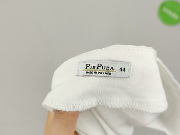 Bluzka damska PurPura, rozmiar 40 - Kolor: jasny beż/ecru - Fason: prosta, lekko luźna, z okrągłym dekoltem - Rękawki: krótkie z dekoracyjnymi, warstwowymi plisami po bokach - Tył: pionowe przeszyc...