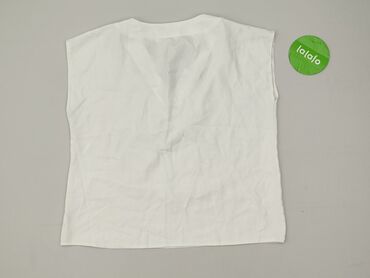 Biała koszulowa bluzka bez rękawów - Klasyczny krój z szeroką listwą na przodzie i dekoltem w kształcie litery V - Prosta, lekko luźna sylwetka; długość do bioder - Materiał: 95% bawełna, 5% spand...