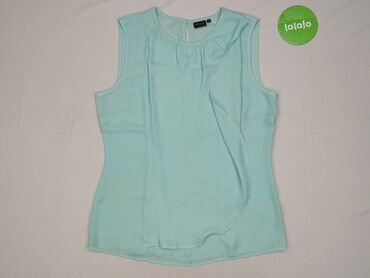 Damska bluzka bez rękawów – satynowy połysk, kolor jasnosrebrny/jasna mięta - Krój: prosty, lekko luźny, okrągły dekolt - Rozmiar: L (metka widoczna na zdjęciu) - Materiał: lekka tkanina o satynow...