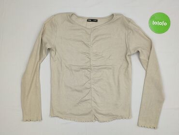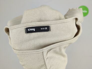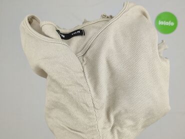 Bluzka Sinsay, rozmiar M - Kolor: beżowy - Fason: dopasowany, długi rękaw - Dekolt: w serek z krótką stójką/kołnierzykiem - Materiał: prążkowana dzianina (elastyczna, miękka) - Długość: standardow...