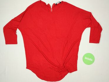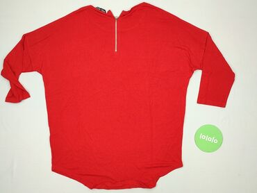 Bluzka damska 157°, rozmiar M - Kolor: intensywna czerwień - Fason: luźny, oversize z obniżoną linią ramion; skrzydłowe rękawy typu nietoperz - Dekolt: okrągły - Długość: lekko dłuższy tył (asymet...