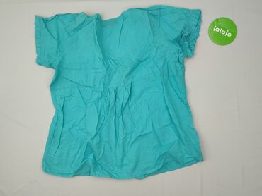 Turkusowa bluzka z koronką i krótkim rękawem - Fason: luźna, marszczona góra, dół zakończony elastyczną gumką tworzącą delikatne zebranie. - Dekolt: okrągły, wykończony szeroką, ażurową koronką w ...