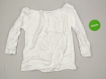 Bluzka damska z ażurowej bawełny, rozmiar S (EUR/US S). - Kolor: biały, haft angielski z drobnymi wycięciami i subtelnym, wytłaczanym wzorem. - Krój: prosty, lekko luźny. - Rękawy: 3/4, bufiaste...