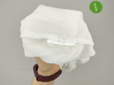 Biała damska bluzka z lekkiej, półprzezroczystej tkaniny (styl szyfonowy). - Fason: luźny, prosty krój typu boxy, bez klasycznych rękawów (opadające ramiona). - Dekolt: okrągły. - Zapięcie: z...