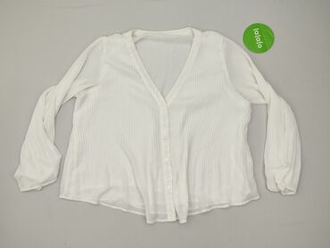 Biała koszula/bluzka damska z długim rękawem. - Krój typu tunika, luźny, z zaokrąglonym, wydłużonym tyłem. - Dekolt w serek z krótką listwą i trzema guzikami. - Na rękawach guziki do podpięcia (moż...