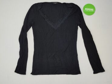 Bluzka damska AMISU - Kolor: czarny - Fason: z długim rękawem, lekko dopasowana - Dekolt: w kształcie V z koronkową wstawką - Materiał: miękki, elastyczny dzianinowy (skład nieczytelny na metce) -...