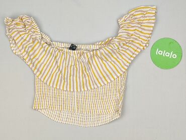 Bluzka damska PRIMARK - Kolor: intensywny musztardowy/żółty - Fason: luźny, krótki top (crop), dekolt szeroki z gumką – można nosić klasycznie lub z opuszczonymi ramionami - Rękawy: krótkie, bufia...