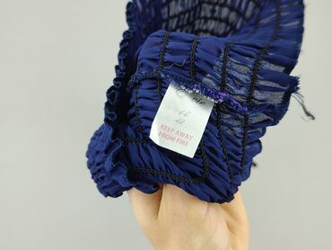 Bluzka hiszpanka z falbaną, granatowa. - Krój: odkryte ramiona (off-shoulder) z szeroką, podwójną falbaną wokół dekoltu - Rozmiar z metki: M - Materiał: 65% bawełna, 35% poliester – miękki, lekko ...