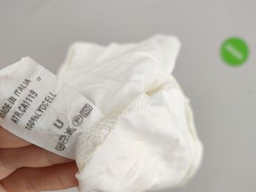 Biała bluzka hiszpanka z krótkimi rękawami wiązanymi na supełki. - Krój: odkryte ramiona (off-shoulder) z elastyczną gumką wokół dekoltu, lekko zaokrąglony dół. - Rękawy: krótkie, z troczkami do z...