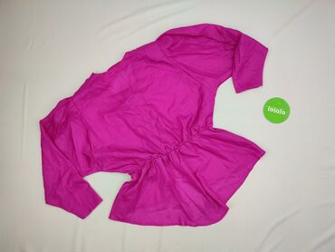 Bluzka damska w kolorze intensywnego fuksji. - Krój: luźny, z marszczeniem pod dekoltem - Dekolt: szeroki, zaokrąglony - Rękaw: do łokcia - Rozmiar z metki: M - Skład materiału: 96% wiskoza, 4% el...