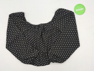 Czarna bluzka damska w białe kropki, wykonana z wiskozy. Charakteryzuje się elastycznym dekoltem typu hiszpanka oraz długimi, marszczonymi rękawami, które dodają jej objętości. Dół bluzki jest równ...