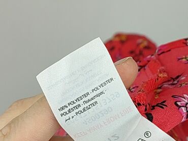 Bluzka damska z krótkim rękawem, w kwiatowy wzór, dominują odcienie czerwieni, różu i zieleni na jasnym tle. Dekolt jest zaokrąglony z marszczeniami, a dół i rękawy również posiadają marszczenia, c...Stan: