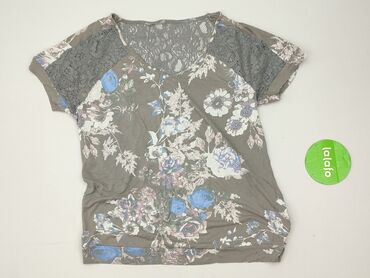 Bluzka damska XLNT, rozmiar EU 44/46 (L) - Model: koronkowa bluzka z krótkim rękawem - Krój: luźny, prosty; delikatnie zaokrąglony dół - Dekolt: w kształcie V - Materiał: ażurowa koronka z kwiatow...