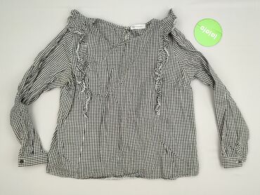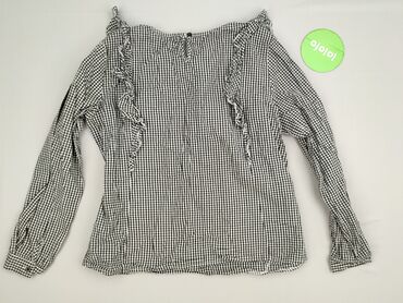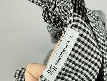 Bluzka damska S/ZACHOWNICA, rozmiar L - Kolor: czarny w duży, biały wzór kratki (grid) - Fason: luźniejszy, z dekoltem w serek bez guzików - Rękawy: długie, zakończone gumką przy mankiecie - Mater...