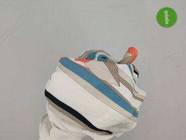 - Kolorystyka i wzór: kremowa baza z graficznymi pasami w odcieniach beżu, turkusu, granatu i czerni; z przodu duży motyw kwiatów w koralowo-czerwonych tonach