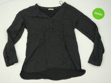 Bluzka damska Orsay z długim rękawem - Kolor: czarny w nieregularne białe kropki (print „dot”) - Krój: dopasowany, lekko rozszerzany u dołu - Dekolt: szeroki, zaokrąglony, wykończony lamówką - Ręk...