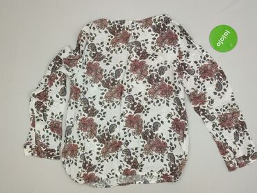 Bluzka damska Reserved - Model: elegancka bluzka z długim rękawem - Wzór: kwiatowy na białym tle (odcienie fioletu, różu i zieleni) - Dekolt: okrągły - Dół: delikatnie zaokrąglony, nieco dłuższy t...Stan: