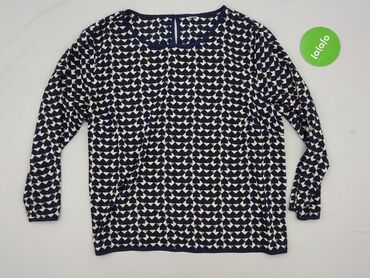 Bluzka damska LEJDIS, rozmiar 38 - Kolor: granatowy z białym, geometrycznym wzorem koncentrycznych kół - Fason: luźniejszy, z długim rękawem; dół wykończony gumką/ściągaczem, który ładnie układa s...