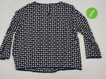 Damska bluzka z długim rękawem, wzór geometryczny - Krój: lekko dopasowany, z dekoltem w kształcie litery V zapinanym na mały guzik. - Rękawy: długie. - Wzór: patchwork/geometryczny z rombami i ko...Stan: