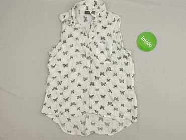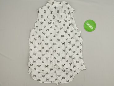 Bluzka damska Yessica (C&A) - Model: koszula bez rękawów z kołnierzykiem - Wzór: drobne kwiaty na białym tle (odcienie różu, zieleni i granatu) - Fason: lekko luźny, zaokrąglony dół, zapięcie na g...