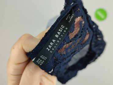 Bluzka damska Zara Basic - Kolor: granatowy - Krój: prosty, lekko dopasowany, krótki rękaw - Dekolt: okrągły - Detale: ażurowa, koronkowa wstawka na ramionach i górnej części przodu oraz tyłu; del...
