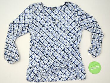 Bluzka damska Street One - Fason: luźna bluzka z długim rękawem - Dekolt: półokrągły z krótką listwą guzikową (3 guziki) - Kolorystyka: granatowy w jasnoniebieski, geometryczny wzór - Materiał: le...