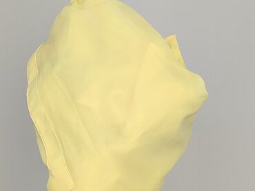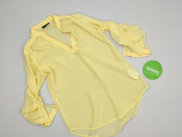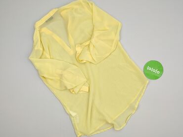 Bluzka damska z lekkiego, zwiewnego materiału w pastelowym, jasnożółtym kolorze. - Krój: luźny, z delikatną zakładką z przodu i dłuższym, zaokrąglonym dołem - Rękawki: krótkie, falbaniaste - Tył: ...