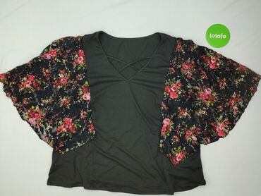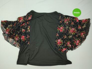 Bluzka SHEIN, damska, rozmiar 1XL. - Model: transparentna bluzka z siateczki z krótkim rękawem - Kolor: czarny - Dekolt: okrągły - Dół: doszyta falbana tworząca peplum - Ozdoby: dwa bogate hafty k...