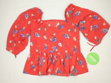 Bluzka damska Sinsay, rozmiar M. - Krój: dopasowana talia z delikatną falbanką u dołu, dekolt w serce z lekkimi marszczeniami z przodu - Rękawy: długie, bufiaste, zakończone elastyczną gumką przy ...