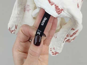 Bluzka damska BM, rozmiar M. - Kolor: kremowy/ecru - Krótki rękaw - Dekolt okrągły - Przód z ozdobnym panelem w roślinnym, beżowym wzorze - Listwa z guzikami dekoracyjnymi na środku - Delikatnie e...