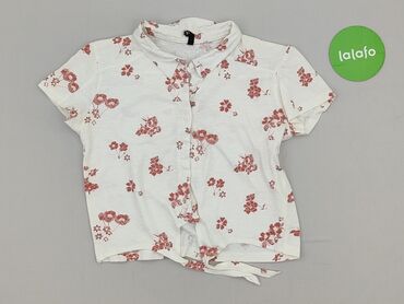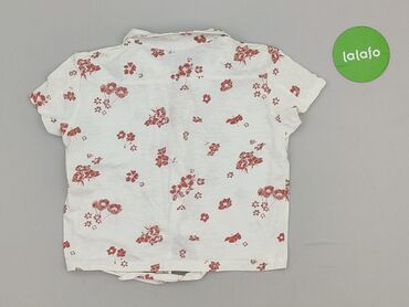 Bluzka damska z krótkim rękawem, zapięcie na guziki z przodu. - Materiał: lekki, zwiewny, pomarszczony efekt (crinkle). - Kolor bazowy: kremowy/ecru. - Wzór: roślinny/ornamentalny w odcieniach c...
