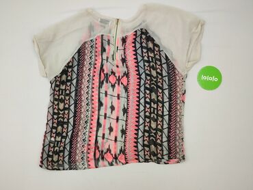 Damska bluzka z krótkim rękawem, wzór geometryczny - Fason: luźniejszy, lekko rozkloszowany dół z rozcięciem z tyłu - Rękaw: krótki - Dekolt: okrągły - Zapięcie: ukryty zamek na przodzie - Wzór/ko...