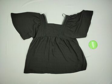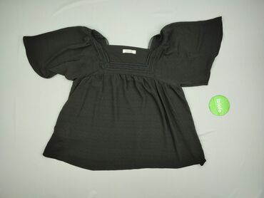 Czarna bluzka damska Promod - Fason: lekko taliowana, z marszczeniami pod dekoltem - Dekolt: szeroki, zaokrąglony - Rękawy: krótkie, lekko bufiaste - Dół: prosty - Detale: dwie ozdobne patki z guz...