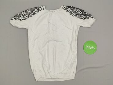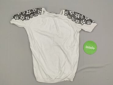 Bluzka damska Orsay, biała, z koronkowymi wstawkami. - Krój: klasyczny T-shirt z krótkim rękawem i okrągłym dekoltem. - Detale: szerokie, ażurowe pasy z koronki z przodu i na rękawkach, dodające l...