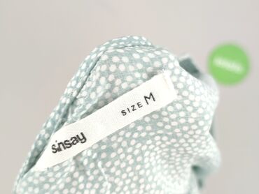 Bluzka Sinsay, rozmiar M - Krój: krótka bluzka typu crop, z elastycznym dołem i marszczeniem przy dekolcie - Rękawy: krótkie, bufiaste - Dekolt: okrągły z delikatną falbanką i wiązaniem z przodu -...