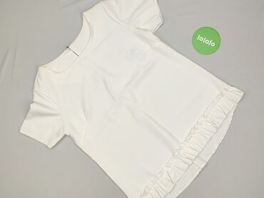 Biała bluzka damska z falbanistymi rękawami - Krój: lekko dopasowana, okrągły dekolt. - Rękawy: krótkie, szerokie, z podwójną falbaną z lekkiej, szyfonowej tkaniny – efektowne, bufiaste wykończeni...Stan: