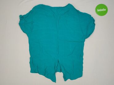 Bluzka damska w kolorze turkusowym - Krój oversize z szerokimi, krótkimi rękawami - Dekolt w kształcie litery V - Asymetryczne zapięcie z przodu na rząd drobnych guzików w kolorze drewna - Dół z p...
