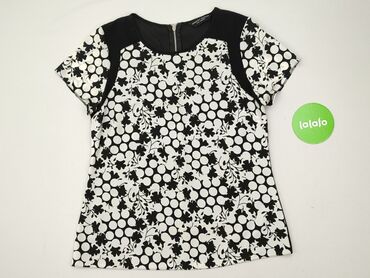 Bluzka damska Dorothy Perkins - Model: bluzka z krótkim rękawem - Kolor/wzór: czarno-biały drobny deseń - Kołnierz: kontrastowy, czarny, klasyczny kołnierzyk - Dekolt: z tyłu małe rozcięcie zapina...