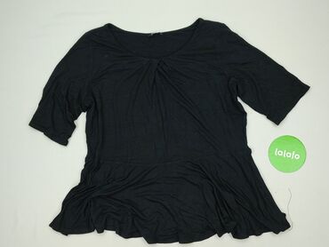 Bluzka damska George - Kolor: czarny - Fason: kopertowy przód z delikatnym marszczeniem i metalową ozdobą przy dekolcie - Rękaw: 3/4 - Dekolt: okrągły - Długość: do bioder, lekko zaokrąglo...