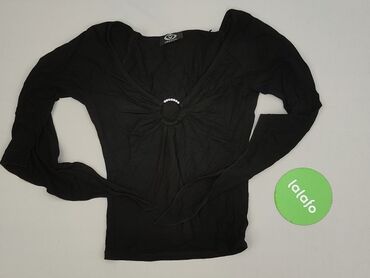 Czarna bluzka damska z długim rękawem i głębokim dekoltem V z koronkową wstawką. - Rozmiar: M (metka) - Skład materiału: 95% poliester, 5% elastan - Faktura tkaniny: delikatny, prążkowany/tekstury...