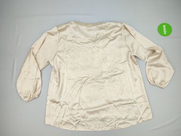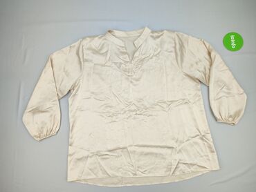 Bluzka damska //text…/, rozmiar 7XL - Kolor: beżowy, subtelnie połyskujący - Fason: kopertowy z wiązaniem przy dekolcie V (dekoracyjne troczki z metalowymi końcówkami) - Rękaw: krótki - Ozdoby: ro...Stan: