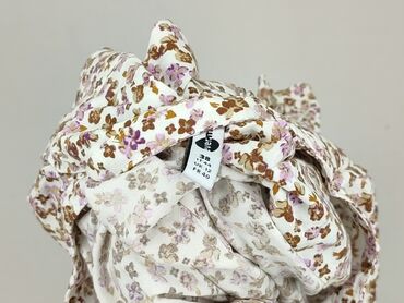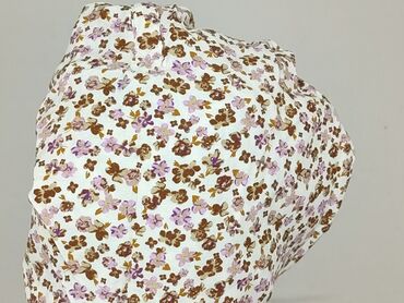 - Wzór: gęste, drobne kwiaty w odcieniach fioletu i brązu na kremowym tle