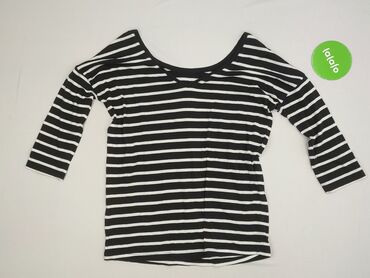 Bluzka damska w paski - Fason: dopasowany sweterkowy top z długim rękawem 3/4 - Wzór: drobne czarno-białe paski - Dekolt: szeroki, zaokrąglony - Wykończenia: czarne ściągacze przy dekolcie, mankie...
