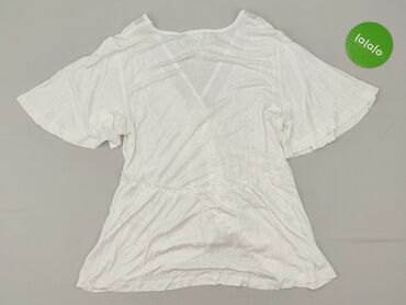 Biała bluzka damska z krótkim rękawem i koronką - Kolor: biały - Fason: luźny, lekko marszczony na dole i przy dekolcie - Dekolt: szeroki, z elastyczną gumką (można nosić klasycznie lub opuszczoną...